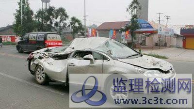 一辆在地震中被砸得不成样的轿车仍在公路上缓慢行驶。该车属于东×雪×龙系列,车牌是川FA85××,车顶后部明显被硬物砸扁,整个车厢从中部开始凹陷变形,前后厢车盖都变形翘起,右后轮胎向外侧偏移,车窗更是没有一块完好。由整辆车的损坏程度来看,只有主驾驶位可以容纳人乘坐。
