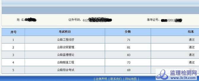 原帖由 buhongrui 于 2012-12-13 17:12:00 发表 恭喜恭喜, 5门全通过: 经济 50 综合 50 合同69.5 隧道 69.5 监理概论:81.5