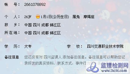 请大家人肉这个骗子,QQ号2661078892 昵称 公路工程试验,主要以检测网名义在外行骗,以出售答案真题为诱饵。