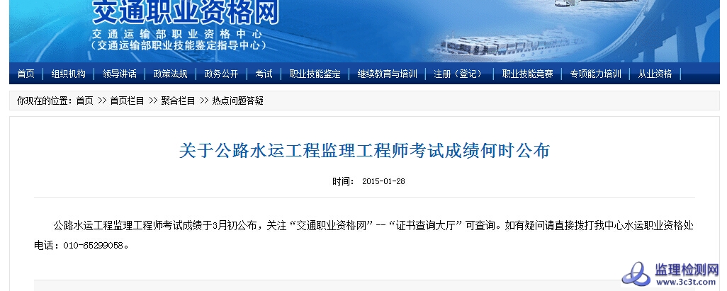 2014年监理工程师成绩3月初公布来源:交通职业资格网。