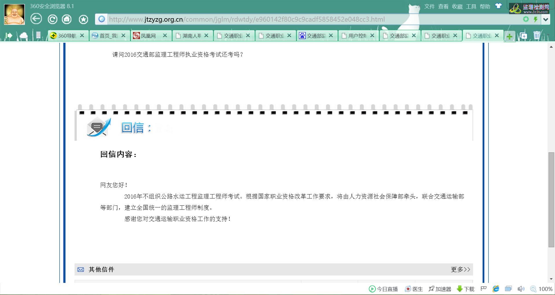 2016年交通部监理工程师又不考了,很有可能并入国家注册监理工程师[img]http://www.jtzyzg.org.cn/common/jglm/rdwtdy/e960142f80c9c9cadf5858452e048cc3.html[/img]