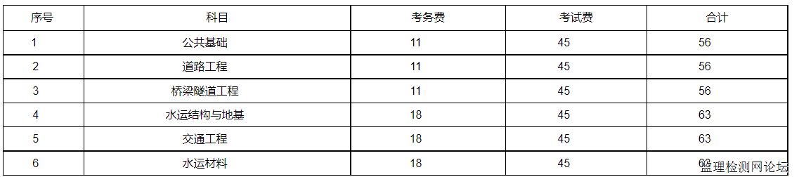根据《关于公路水运工程试验检测专业技术人员和勘察设计注册土木工程师(道路工程)考试考务费标准的通告》(交通运输部职业资格中心通告2018年第10号)、《广东省发展改革委广东省财政厅关于改革我省专业技术人员职业资格考试收费标准管理方式的通知》(粤发改规〔2018〕9号),本次考试收费标准如下表: