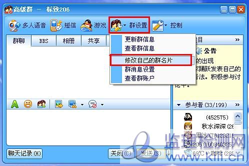 监理QQ群试验检测QQ群中经常出现要修改群名片的事,下面给大家说一下怎样改QQ群名片:进入QQ群面版,在面版上面有一行图标菜单,最后一个是“设置”按钮,点击它,选择“修改自己的群名片”,然后会弹出一个设置框,在里面修改就可以了,如果不想让管理员修改你的名片的话可以把下面那个“允许管理员协助修改我的群名片”选项框中的勾去掉。下面是详细教程: