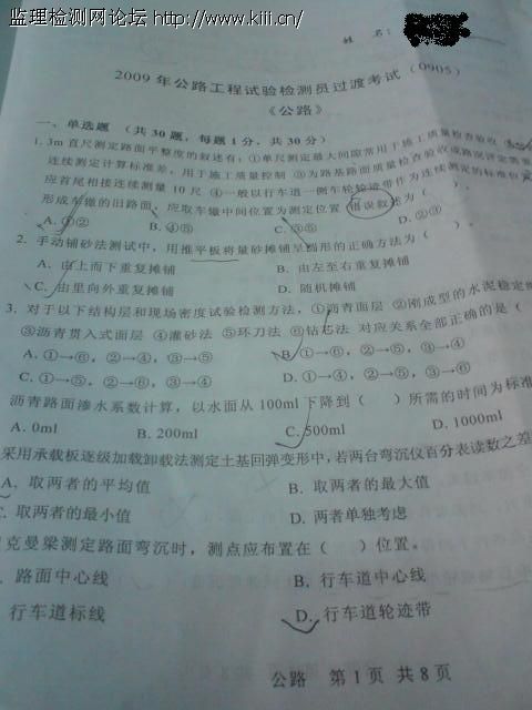 回复: 09年公路水运工程试验检测考试试题回忆收录汇总 奖励金币!