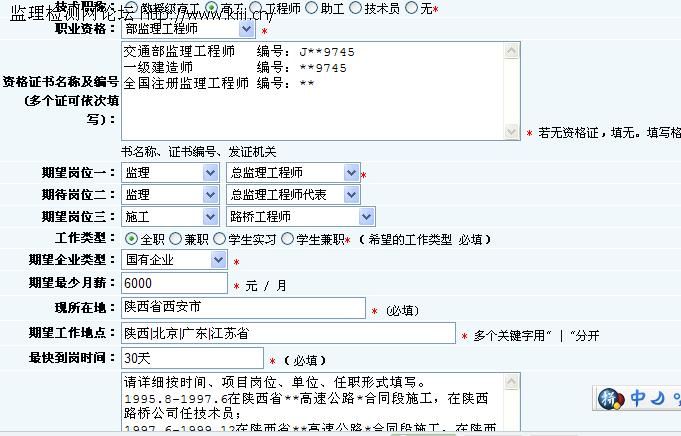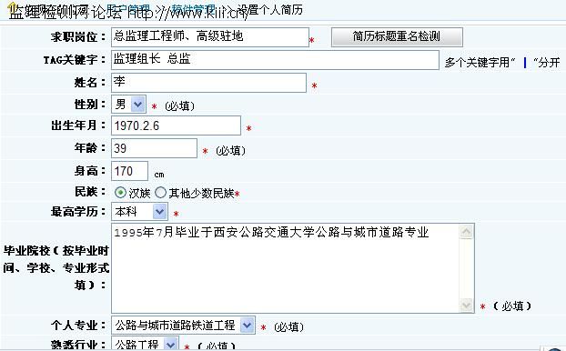 一、填写真实有效简历 (填写简历后,管理人员审核通过自动加20金币,不详细的简历将退回,请修改)