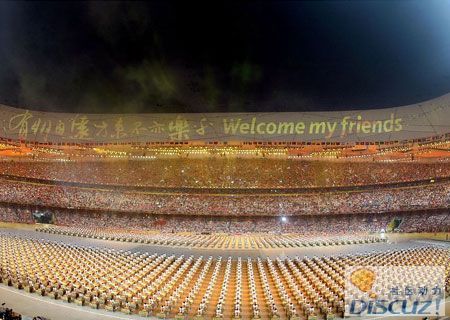 鸟巢真的是个气势磅礴的地方,还是击缶部分。仰角度观看。导播就会切观众席特写