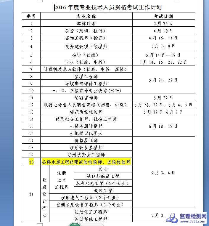 2016年公路水运工程试验检测考试时间9月3日4日两天,距一级建造师考试时间 9月24日25日太近了,对考一建很不利.