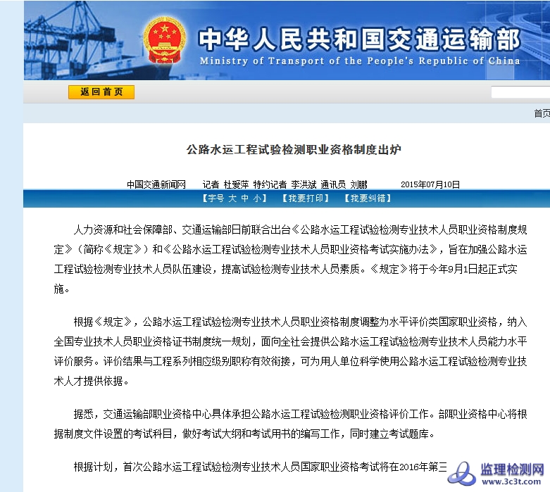 来源:公路水运工程试验检测职业资格制度出炉-2015年07月新闻-中华人民共和国交通运输部