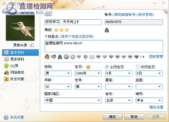 为感谢监理检测网,我已专门申请一QQ宣传网站,且已发送电子邮件,请管理员审核并给加金币!